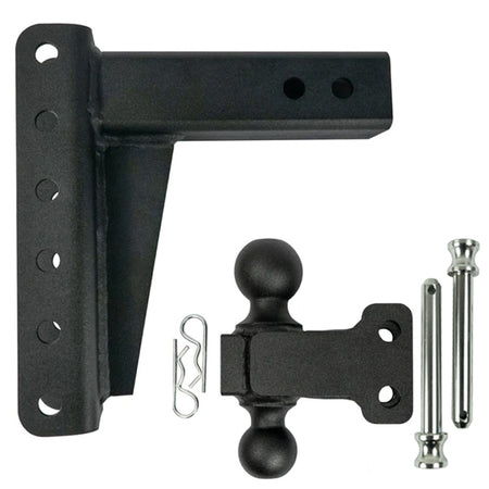 For 2-1/2 Inch Receiver; Lockable (Lock Sold Separate); 14 000 Pound Gross Trailer Weight; Adjustable 6 Inch Drop/ 6 Inch Rise; Non Swivel; Non-Extendable; 9 Inch Shank; With Black Powder Coated Hitch Balls; Dual Ball - 2 Inch and 2 5/16 Inch; Steel; With Hitch Pin