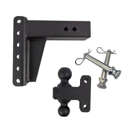 For 3 Inch Receiver; Lockable (Lock Sold Separate); 36000 Pound Gross Trailer Weight; Adjustable 6 Inch Drop/ 6 Inch Rise; Non Swivel; Non-Extendable; 9 Inch Shank; With Black Powder Coated Hitch Ball; Dual Ball - 2 Inch and 2 5/16 Inch; Steel; With Hitch Pin