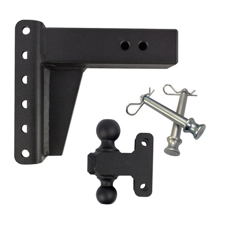 For 3 Inch Receiver; Lockable (Lock Sold Separate); 22 000 Pound Gross Trailer Weight; Adjustable 6 Inch Drop/ 6 Inch Rise; Non Swivel; Non-Extendable; 8 Inch Shank; With Black Powder Coated Hitch Ball; Dual Ball - 2 Inch and 2-5/16 Inch; Steel; With Hitch Pin