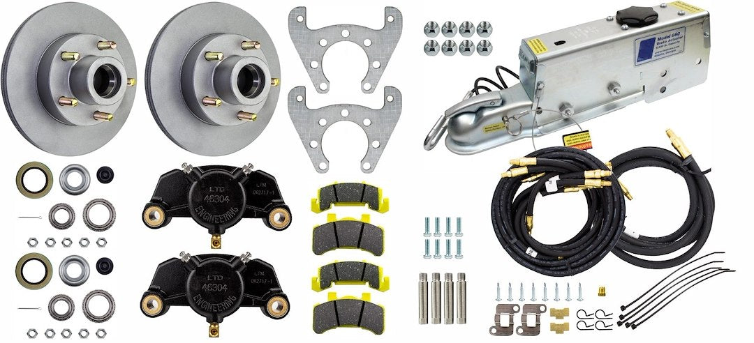 Drum To Disc Conversion; Fits 13 To 15 Inch Wheels; With 10 Inch Vented Rotor Disc Brake/ Model 660 Brake Actuator/ Auto Latch Coupler/ Brake Line Kit/ Brake Hose/ Brass Fittings/ Mounting Hardware