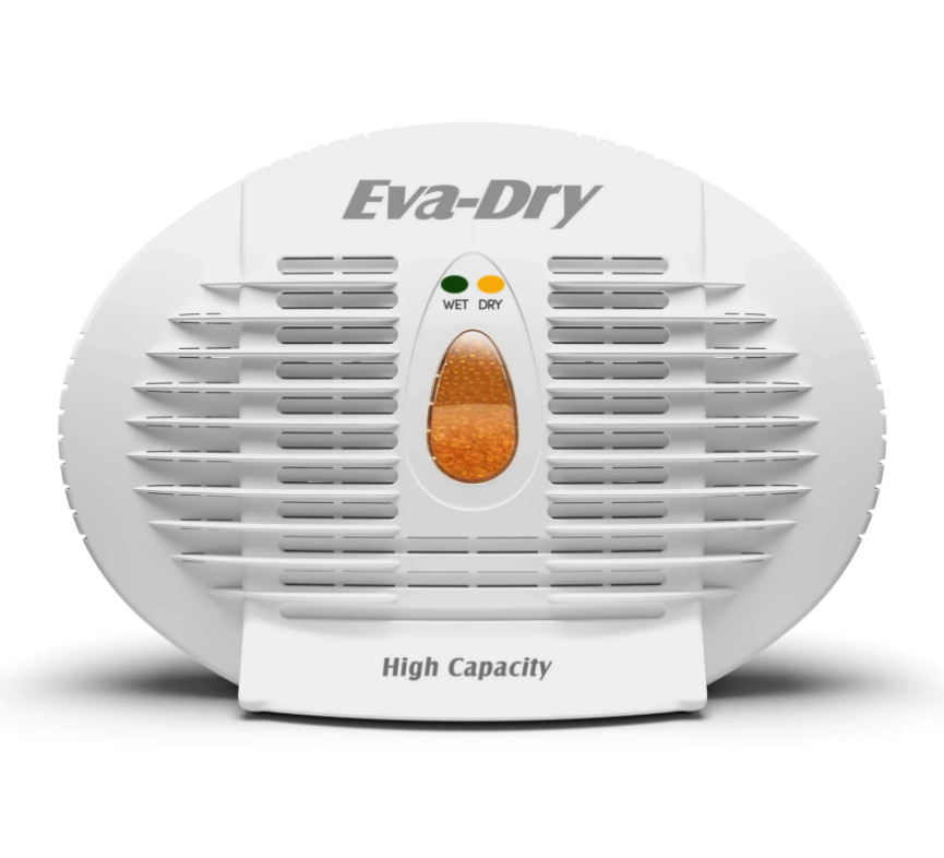 Mini; Non-Toxic Crystallized Desiccant Technology; 5-1/2 Inch Width x 5-1/2 Inch Height x 2-1/2 Inch Depth; 6 To 8 Ounce Moisture Removal Capacity; Renewable; For Small Spaces Up To 500 Cubic Foot Including Closets/ Safes/ Drawers/ Pantries/ Small Rooms/ Container Storage/ Toolboxes/ Tackleboxes/ Under Sinks/ Cars/ RVs/ Collectible Storage/ Boats/ Cabinets/ Gun Safes/ Gym Bags; Child/ Pet Safe; Non-Toxic; Odorless; 100/ 240 Volt AC Input Voltage For Renewal; Lasts 30 To 60 Days Before Renewing