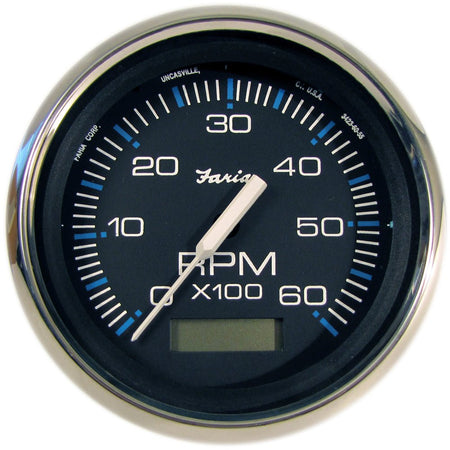 Faria Chesapeake Black 4" Tachometer w/Hourmeter - 6000 RPM (Gas) (Inboard) - 33732
