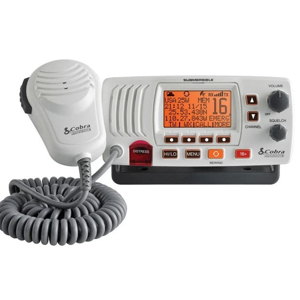 Fixed Mount; United States/ Canadian/ International Channels; 1 or 25 Watt; NOAA Channels/ Instant Channel 16/ 9; With GPS Capability; Without Bluetooth Capabilities; Public Address System; Illuminated LCD Display; White; Class D; With Flush And Surface Mount