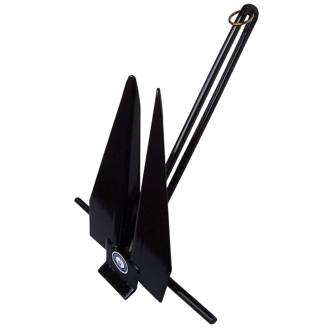 Deep Water; Slip-Ring Fluke Style; Holds Up To 16 Feet Length Boat; 6 Pound; 16 Inch Length x 4-1/4 Inch Width x 18 Inch Height; PVC Coated; Black; Cast Iron; Anchor Only; Should Always Use Anchor Chain To Provide Necessary Weight And Maintain Proper Approach Angle For Setting
