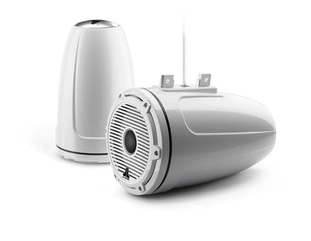 JL Audio M6 7.7in Enclosed Tower Speakers White Classic Grille Black Tweeter