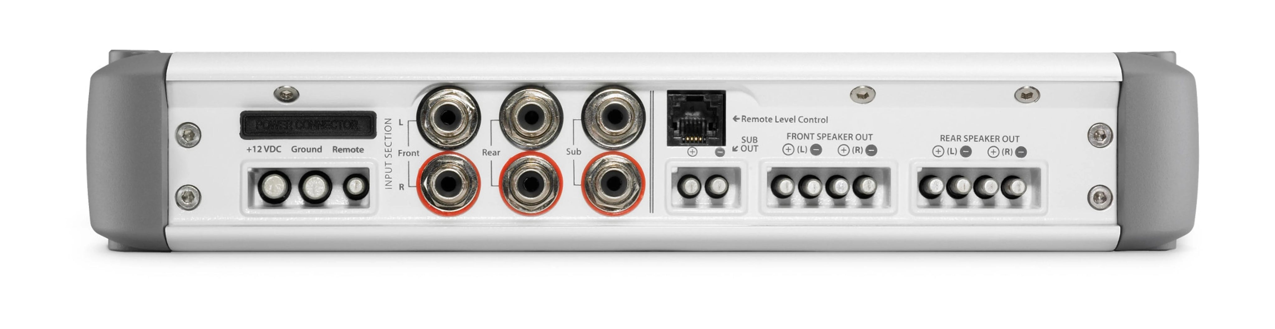 While extremely compact, this amazing amplifier will comfortably drive a complete high-performance marine audio system: that is, four satellite speaker systems and a subwoofer system... with a very serious 900 watts of power!