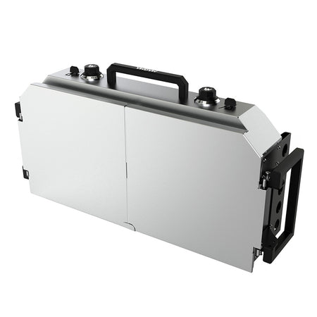 It starts with the brushed 304 stainless steel Single Firebox. This Firebox features 2 x 15,000 BTU burners with built-in wind deflectors, to maintain a strong and efficient flame in any condition. Fold-out food preparation shelves with an FDA-approved cutting board insert, that can be easily removed for cleaning. These side shelves double as the lid when the Firebox is not in use and secures with a latch for easy transport. All handles and controls are made from durable, heat hesitant thermal plastic.