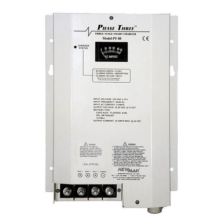 Newmar’s Phase Three Series Battery Chargers employ “Smart” battery charging technology for 12-volt systems aboard marine applications including workboats, military vessels, commercial vessels, and recreational craft. This charger interacts with batteries, providing the optimum three-stage charge process for fast recovery and conditioning, maximizing performance, and extending battery life.