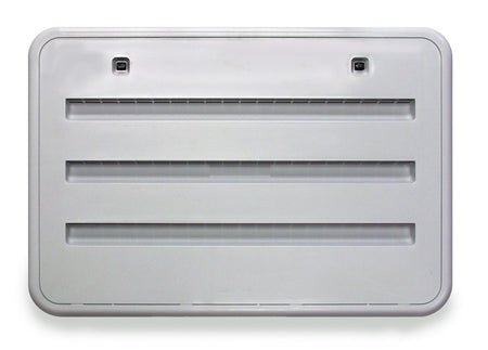 Use With Most Norcold Refrigerator; Air Intake Side Vent; 21-1/2 Inch Width x 13-3/4 Inch Height; Radius Corner; Polar White; Plastic