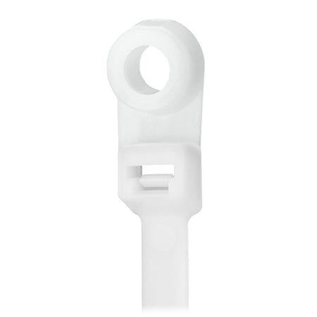 8" Cable Tie with Mounting Ring - Natural Color - 50lb Tensile Strength - 2" Bundle Diameter - 100 Piece Bag