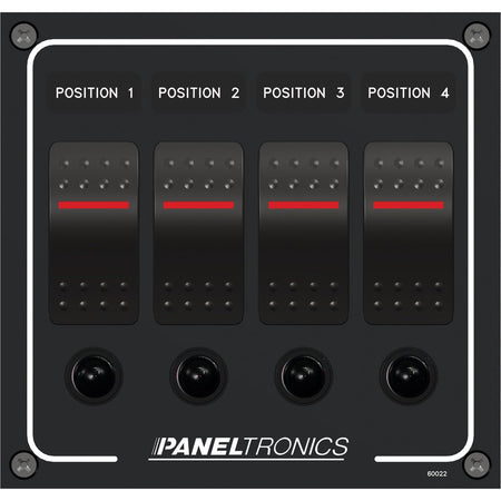 Paneltronics Waterproof Panel - DC 4-Position Illuminated Rocker Switch & Circuit Breaker