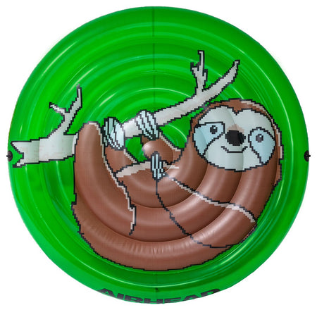 Pool Float; 62 Inch When Deflated; Green; With Sloth Graphics Cool Pixelated Design/ Cup Holder/ Safety Valve
