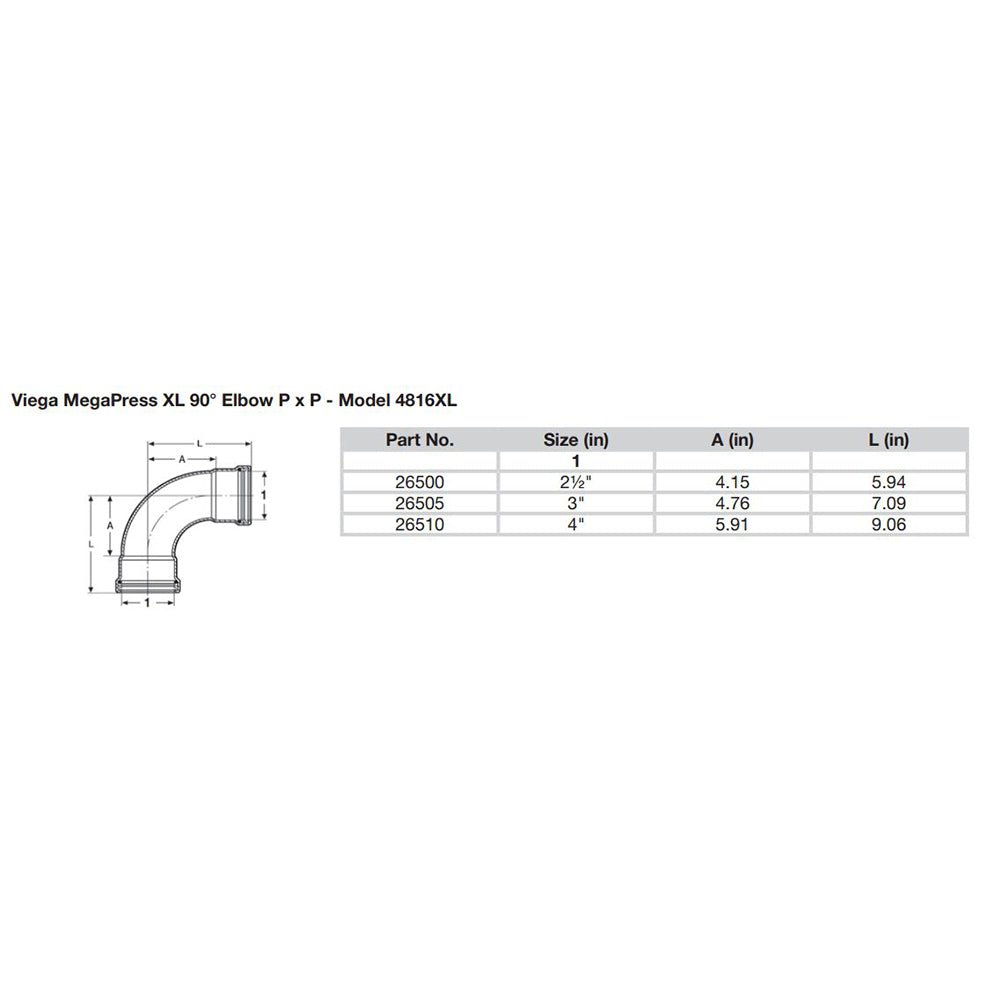 Viega MegaPress 2-1/2" 90° Carbon Steel Elbow w/FKM - Double Press Connection - Smart Connect Technology