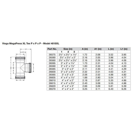 Viega MegaPress 4" Carbon Steel Tee w/FKM - Triple Press Connection - Smart Connect Technology