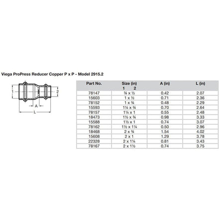 Viega ProPress 3/4" x 1/2" Copper Reducer - Double Press Connection - Smart Connect Technology